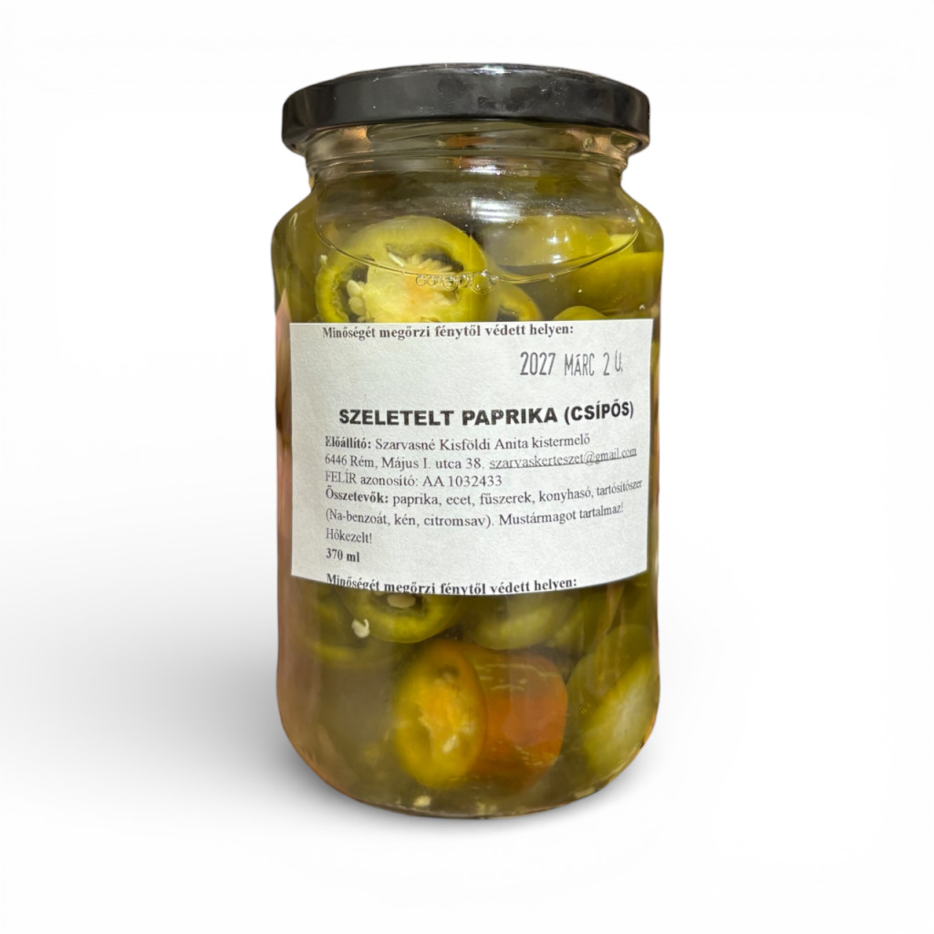 A rémi Szarvas Kertészet csípős szeletelt paprika friss, válogatott paprikából készül, majd ízesített savanyúságként kerül üvegbe . Ropogós textúrája és markáns csípőssége miatt ideális választás minden olyan ételhez, ahol szeretnél karakteres ízt és egy kis extra pikantériát ️.