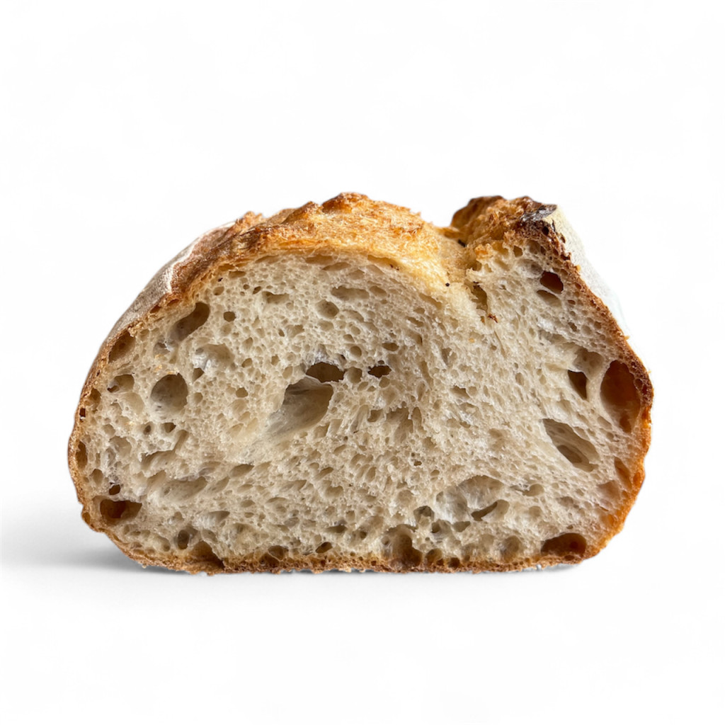 A ropogós héj alatt lyukacsos, puha bél rejtőzik, enyhén savanykás aromával – tökéletes szendvicsalap, de magában, vajjal is élmény.